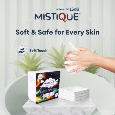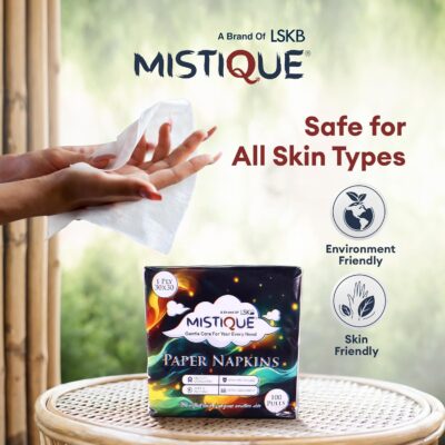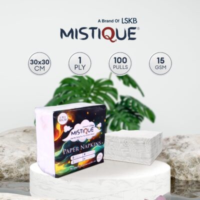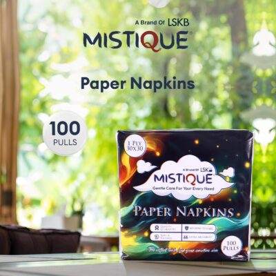 MISTIQUE 1 Ply Tissue Paper Napkins (Pack of 6 – 100 Pulls Each) are soft, lightweight, and highly absorbent napkins designed for everyday convenience. Featuring a generous 30 × 30 cm sheet size, these napkins are suitable for wiping spills, hand cleaning, and dining use. Ideal for homes, kitchens, offices, parties, and gatherings, they provide hygienic single-use practicality with easy dispensing. This value pack of 600 pulls offers reliable performance and long-lasting utility for daily needs.