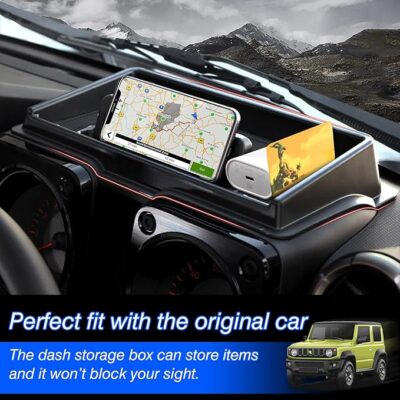 Mixsuper Dash Center Console Organizer for 2019-2023 Suzuki Jimny JB64W JB74W, Dashboard Console Tray Storage Box Phone Stand Black