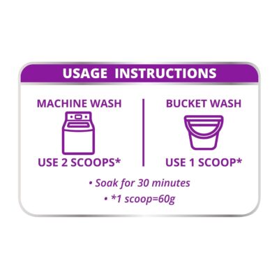 Powerful Cleaning Action – Effectively removes tough stains in both bucket wash & top-load machines.
