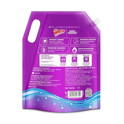 Mr White Liquid Detergent 2L Super Saver Pack | Whiteness Boosters Gives Ultimate Whiteness | No Bleach Formula Keeps Clothes Bright & Safe | Ideal for Front Load, Top Load Machines and Bucket Wash