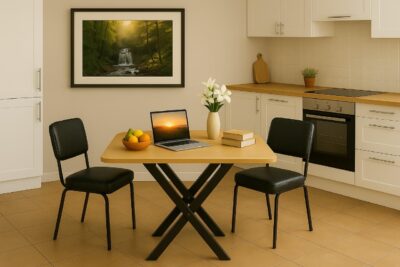 Bring flexible functionality to your living room, bedroom or home-office with this compact foldable dining-desk hybrid. Crafted with an engineered plywood tabletop and a sturdy powder-coated metal frame, this table makes a smart multipurpose choice for study, dining, laptop work or casual meals. The top-size (approximately 75 × 80 cm) provides ample surface space for two people or a full desk setup, while its foldable design allows quick collapse and storage when not in use—freeing up valuable floor space in smaller rooms. Finished in a warm natural wood or soft yellow tone, the table blends seamlessly into modern décor while offering durability and ease of maintenance. Whether you’re working from home, eating together, or studying in a compact space, this table offers style, flexibility and practical utility.