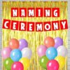 This combo includes 2 shimmering gold foil curtains, a stylish Naming Ceremony banner, and 25 multicolor balloons that add a lively and festive touch to your backdrop.
