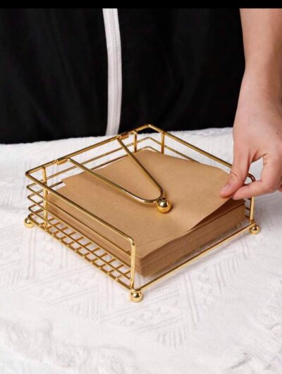 The Square Shaped Napkin Holder is designed to combine functionality with elegance for every dining setup. Crafted with a sturdy weighted arm, it holds tissues securely in place, even in breezy outdoor settings. Its metallic gold finish enhances table aesthetics, making it ideal for daily use or festive décor like Diwali celebrations. Perfect for dining tables, kitchens, restaurants, or farmhouses, it complements both modern and traditional interiors. The flat base ensures stability while allowing easy access to tissues. Built from high-quality material, it resists rust and wear for long-lasting shine. A beautiful blend of practicality and luxury, this napkin holder elevates any mealtime experience.