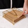 Napkin Holder for Dining Table - Square Shaped with Weighted Arm - Modern Tissue Paper Holder for Kitchen, Restaurant, Farmhouse, Gold - Diwali Decoration - Hotel Tableware (Gold)