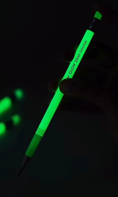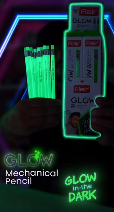 NATIONAL STATIONARY FLAIR GLOW 2.0mm Mechanical Pencil Set includes 10 glow-in-the-dark pencils with durable extra dark lead. Comes with 1 eraser and 1 sharpener, ideal for school, office, and sketching use.