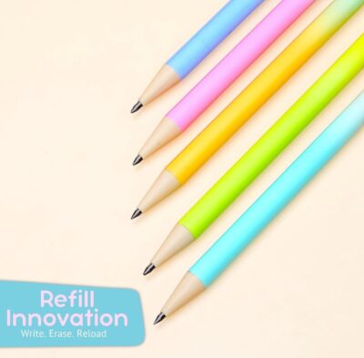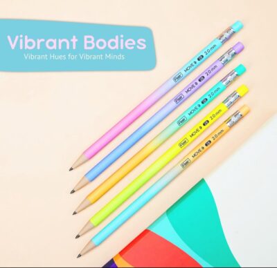 NATIONAL STATIONARY Flair Move 2.0mm Mechanical Pencil Set includes 10 refillable pencils with extra dark lead for smooth writing and sketching. Ideal for exams, schoolwork, and creative drawing in multicolor designs.