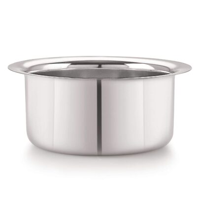 The Neelam Stainless Steel 7 22G Flat Bottom Tope is a reliable and versatile addition to any kitchen. Crafted from high-quality stainless steel, it offers superior strength, rust resistance, and long-lasting durability. With a 350 ml capacity, it is perfect for preparing small servings, whether you’re boiling milk, steaming vegetables, or cooking light portions of everyday dishes. The flat-bottom design ensures uniform heat distribution, preventing food from burning and helping conserve energy through efficient cooking. Its sturdy build retains heat effectively, reducing cooking time while maintaining consistent results. Easy to clean and maintain, this tope comes in a classic silver finish that blends seamlessly with modern kitchenware, making it both functional and elegant.