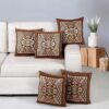 Nendle Jacquard Weaved Decorative Velvet Cushion Cover/Sofa Pillow Cover 500 TC Set Of 5 Pieces (Camel, 16X16 Inches)