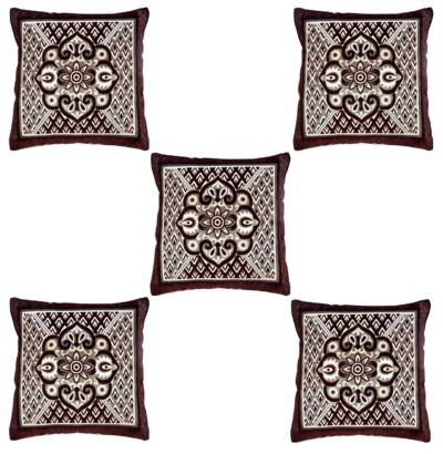 Nendle Jacquard Weaved Decorative Velvet Cushion Cover/Sofa Pillow Cover Set of 5 Pieces (Brown, 16x16 Inches)-500 TC