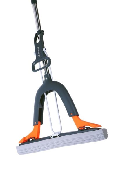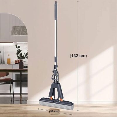The New Self-Wringin Super Sponge Mop (380 mm) is a large, efficient floor-cleaning tool designed to make everyday mopping simple and hygienic. Featuring a super-absorbent PVA sponge head nearly 38 cm wide, it soaks up water, spills, and dirt quickly and thoroughly — ideal for tiles, marble, wood, laminate, and other smooth surfaces. Its self-wringing butterfly design allows you to squeeze out excess water easily by pulling the handle, keeping your hands clean and dry without direct contact with dirty water. The robust stainless steel handle provides durability and comfortable maneuverability around furniture and into corners, while the wider sponge head covers more floor area in fewer passes, saving time and effort. Adjustable in length and easy to install, this mop also includes a hanging hole for compact storage and delivers effective, streak-free cleaning with minimal hassle.