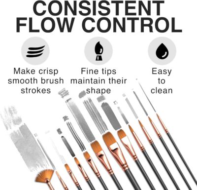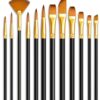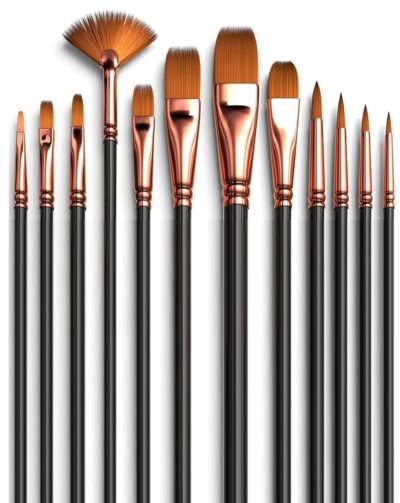 Nina Nino Painting Brushes Set of 12 Professional Round Pointed Tip Nylon Hair Artist Acrylic Paint Brush for Acrylic/Watercolor/Oil Painting