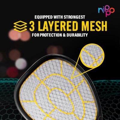 Protect your home from mosquitoes with the NIPPO Swooper Shield Rechargeable Mosquito Bat, built for durability and long performance. Its advanced lithium-ion battery lasts up to 50% longer, while fast charging ensures it’s always ready for use. The racquet is equipped with a radiant glowing LED to help you spot mosquitoes even in low-light areas. With a shock-proof safety design, it offers safe and comfortable usage at all times. Backed by a 6-month warranty, this insect killer bat is a dependable solution for keeping your surroundings mosquito-free.