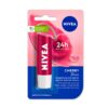 NIVEA Cherry Shine Lip Balm delivers 24-hour melt-in moisture with natural oils and a glossy finish.