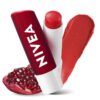NIVEA Shine Caring Lip Balm in Pomegranate delivers nourishing moisture with a glossy red tint for a vibrant look.