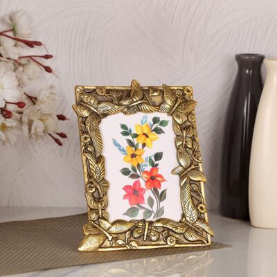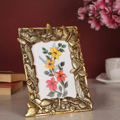 Elegant butterfly-design gold-plated aluminium photo frame — perfect for home décor, office desks, and gifting on special occasions.