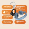 The Noise Two Wireless On-Ear Headphones deliver up to 50 hours of playtime, keeping your music, podcasts, and calls going all day without frequent recharging. They use Bluetooth v5.3 for stable wireless connectivity and support dual pairing, so you can easily switch between two connected devices. With low latency (around 40–45 ms), these headphones help reduce audio lag for casual gaming and video viewing. A set of 4 play modes gives you flexibility — including Bluetooth, AUX, FM radio, and SD-card playback — so you’re not limited to just one source. Comfortable on-ear cushions and a lightweight build make long listening sessions easier, while the built-in mic lets you handle hands-free calls. Additional features such as IPX5 water resistance, TF-card support, and voice-assistant compatibility add practical everyday functionality.