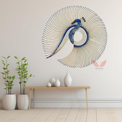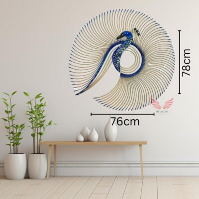 Transform your interiors with the Nualish Metal Peacock Wall Art, a stunning 3D handcrafted masterpiece that radiates elegance and artistic flair. Measuring 78×76 cm, this premium metal décor showcases a beautifully detailed peacock in luxurious shades of blue, designed to create a captivating focal point in your home.