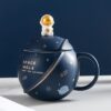 NYRWANA Coffee Mug, Gift for Man, Birthday Present for Brother, Mugs for Present, Diwali Gift, Ceramic Mug, Cute Mugs, Astronaut Planet Coffee Mug with 3D Creative Space, Lid & Spoon (400ml-Dark Blue)