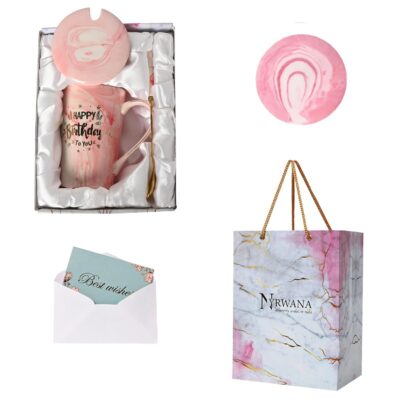 This NYRWANA pink coffee mug comes with a matching spoon, box and bag, making it a charming and thoughtful gift for women on birthdays, Diwali or special occasions. Its 400 ml capacity and cute design add joy to daily coffee or tea moments.