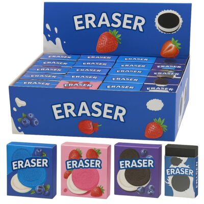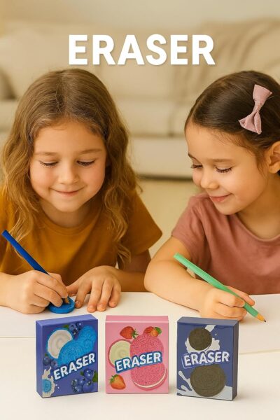 Make writing time extra fun with these adorable Oreo Biscuit Erasers! This pack of 4 includes cute, cookie-shaped erasers that resemble real chocolate sandwich biscuits with cream filling, making them a hit among kids and stationery lovers. Each eraser is soft, effective, and wipes pencil marks clean without damaging paper.