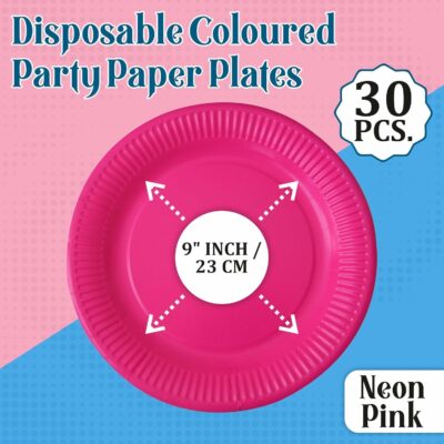 Pack of 30 – Round Paper Plates | 9 Inch Disposable Paper Plates | Pink Paper Plate Eco-Friendly Plates for Birthday Parties, Picnics, BBQs & Events, Wedding, Cakes, Dessert, Snack, Fruits