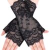 PALAY® Lace Gloves for Women, Black Fingerless Floral Bridal Gloves for Dancing Masquerade Wedding Party - 1 Pairs