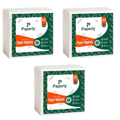 Paperly Premium Tissue Paper Napkins (Pack of 3, 2 Ply – 50 Pulls Each) are made from 100% virgin pulp and feature an elegant embossed finish for a premium look and feel. Soft, strong, and highly absorbent, these disposable dinner serviettes are gentle on the skin while effectively handling spills and messes. Ideal for restaurants, hotels, travel, home use, cars, and offices, they offer hygienic single-use convenience with reliable durability. Designed for everyday dining and professional settings, Paperly napkins combine comfort, quality, and practicality.