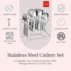 The balanced weight and smooth edges ensure a comfortable grip and safe use, while the modern stand design keeps your tableware neatly organized and easily accessible. Whether you’re setting your home dining table or gifting someone special, this cutlery set combines style, durability, and functionality in one elegant package.