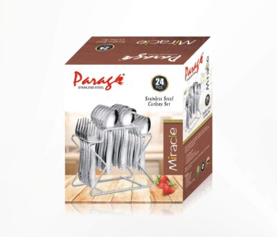 The Parage Miracle Stainless Steel Cutlery Set (25-Piece) is designed to add elegance, convenience, and lasting quality to your dining table. This complete set includes 6 dinner spoons, 6 tea spoons, 6 forks, 6 soup spoons, and 1 stylish storage stand, making it a perfect choice for family meals or entertaining guests.