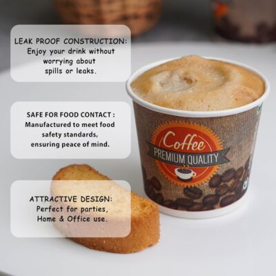 PARICOTT 150 ml Tea Paper Cups (Pack of 50) are premium printed disposable cups designed for serving tea and coffee with convenience and style. Made from eco-friendly, recyclable, food-grade paper, these one-time use paper glasses are sturdy, leak-resistant, and comfortable to hold. Ideal for home use, offices, events, parties, and weddings, they ensure hygienic beverage serving while reducing cleanup effort. With an attractive printed design and reliable quality, PARICOTT paper cups are a practical and responsible choice for everyday and special occasions.