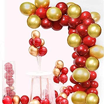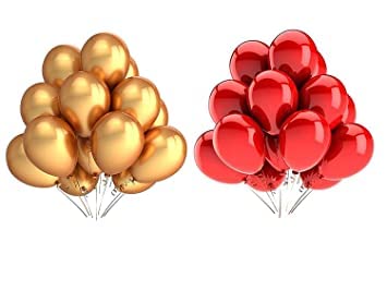 This kit includes 14 gold alphabet foil balloons spelling out NAMING CEREMONY and 20 high-quality metallic balloons in a vibrant mix of gold and red.