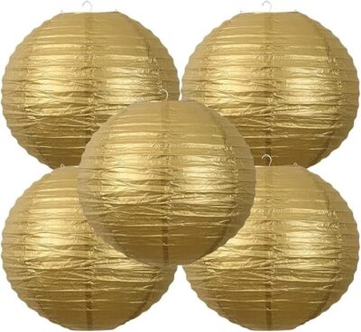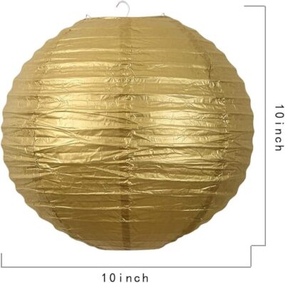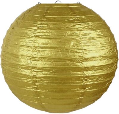 The Party Mane Chinese Style Paper Lanterns come in a set of 2 elegant gold lanterns, each measuring 12 inches, perfect for adding a festive and sophisticated touch to any celebration. Made from high-quality, lightweight paper with a durable inner metal frame, these lanterns hold their shape well and are easy to assemble and hang. Their rich gold color adds a luxurious and celebratory feel, making them ideal for parties, weddings, festivals, birthdays, home décor, and themed events. Whether used indoors or outdoors, they create a warm, stylish ambiance and can be paired with LED lights for an enhanced decorative effect. Reusable with proper care, this set of gold lanterns brings charm, brightness, and cultural elegance to any event setting.