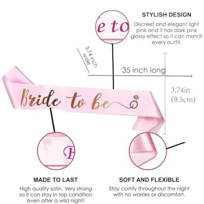 The elegant “Bride to Be” tiara adds a sparkling, royal touch, while the matching sash enhances the bride’s look with a stylish and celebratory vibe.