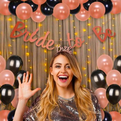 Party Props | Bride to Be Decoration Set - 46 Pcs | Bridal Shower Kit | Rose Gold & Black | 40 Balloons, Sash, Banner | Bachelorette Party Decor | Wedding Celebration Supplies | Metallic Finish