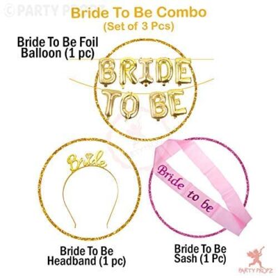 The Party Propz Bride to Be Decoration Set Combo includes 3 beautifully coordinated bridal accessories designed to create a festive and glamorous atmosphere for bachelorette parties and bridal showers. This set features a premium satin “Bride to Be” sash that adds elegance to the bride’s look, a stylish rose-gold crown for a regal touch, and a high-quality cardstock “Bride to Be” foil banner that instantly enhances any party backdrop. Perfect for photos, décor, and making the bride feel special, each piece is crafted with durable materials and eye-catching detail. Easy to set up and suitable for home, hotel, or event venues, this combo adds charm, sparkle, and fun to pre-wedding celebrations, making it an essential pick for creating unforgettable bridal moments.