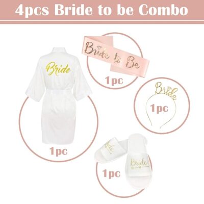 Party Props Bride to Be Decoration Set Combo - 4 Pcs Bachelorette Party Decorations Combo with Bride to Be Bath Robe, Bride to Be Sleepers, Bride to Be Sash and Crown | Bridal Shower Decorations Kit