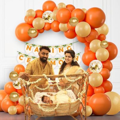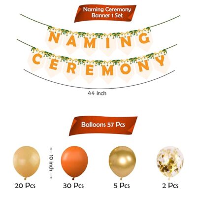 The Party Propz Baby Naming Ceremony Decoration Kit is a thoughtfully designed 58-piece Namkaran décor set that brings elegance, color, and joy to your baby’s special day. This all-in-one kit includes a stylish Naming Ceremony banner, a premium name reveal board, coordinated decoration items, and a beautiful backdrop that creates a perfect setting for photos and celebrations. Crafted with high-quality materials and a cohesive theme, each piece enhances the festive atmosphere—ideal for home setups, hall decorations, and photoshoots. Easy to assemble and visually stunning, this decoration kit helps you create unforgettable memories and a warm, welcoming ambiance for your baby’s naming ceremony.