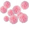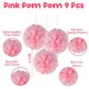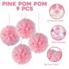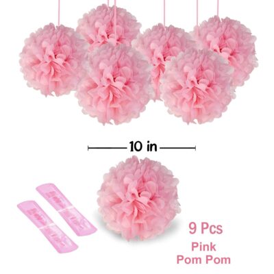 This set includes 9 beautifully crafted 10-inch paper pom-poms in vibrant pink, perfect for hanging as party decorations, wall accents, or festive décor pieces.