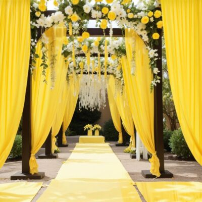 Add a vibrant traditional touch to your celebrations with the Party Propz Yellow Net Backdrop Decoration Set. This set includes 2 yellow backdrop curtains along with a decorative ribbon, designed to enhance Haldi ceremonies, Mehendi functions, Pooja décor, and festive home decoration.