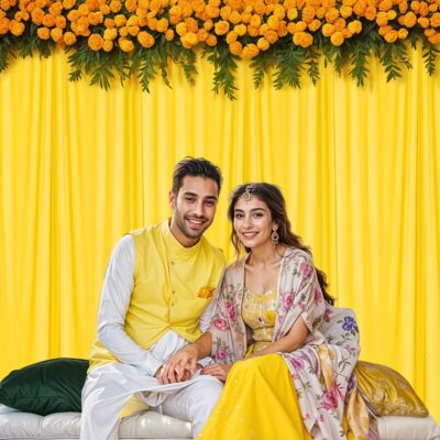 Easy to hang and style, this backdrop set instantly transforms any space into a bright, photo-worthy décor setup with its traditional yellow color. Ideal for doorways, stages, mandirs, or wall backdrops during any festive event.