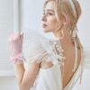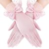 PATPAT® 1 Pair Pink Lace Gloves for Women, Bridal Elegant Gown Net Gloves for Women with Bow and Lace Cuff, Adult Ladies Elegant Mittens for Wedding Party Festival Photography Formal Gown Accessories
