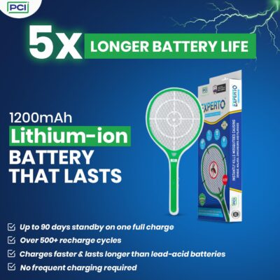 PCI EXPERTO Rechargeable Mosquito Killer Bat | 1200mAh Li-ion Battery | 90-Day Standby | USB Charging | LED Light | Made in India