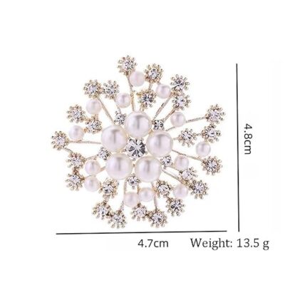 Charming pearl and crystal snowflake flower brooch pin, perfect for accessorizing dresses, scarves, shawls, clothes, or bags, and an ideal gift for women and girls.
