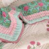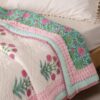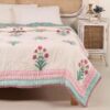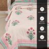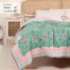 Peepul Tree Single Bed Cotton Malmal Quilt | Hand Block Jaipuri Razai | Beautiful Floral Soft, Breathable & Reversible AC Blanket | Made in India (Turquoise & Pink, 60x90 inches)