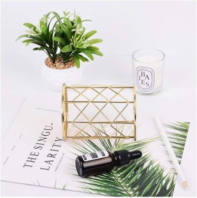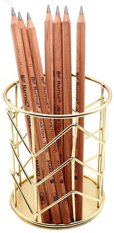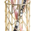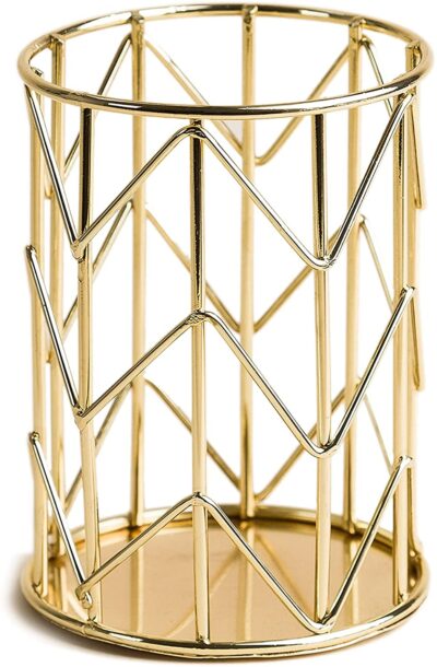 This Stylish Pencil Pen Cup Holder is a versatile desk organizer in gold finish. Perfect for pens, pencils, makeup brushes, or office accessories.