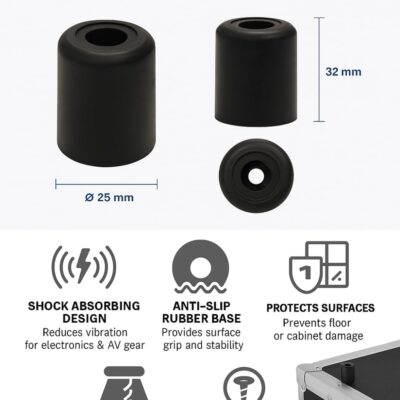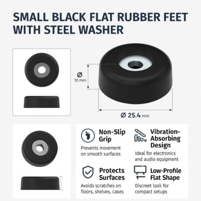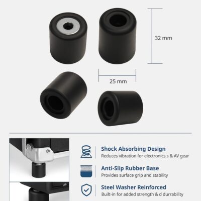 Durable anti-vibration rubber feet with steel washers for stable, noise-free support. Ideal for electronics, cabinets, and AV equipment.