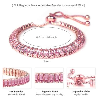 An ideal Valentine’s Day gift, as well as a thoughtful present for birthdays and anniversaries, this Peora baguette stone bracelet symbolizes elegance, love, and timeless fashion.