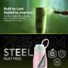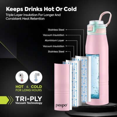 The Pexpo Atlas 1000 ISI Certified Stainless Steel Vacuum Insulated Flask combines elegance, safety, and long-lasting performance. Its double-wall insulation ensures your beverages stay hot or cold for extended periods, ideal for all-day hydration. With a 940ml capacity, it provides ample volume for adults at home, work, or during workouts. The convenient flip-top cap allows easy, spill-free sipping on the go. Crafted from premium stainless steel and finished in stylish baby pink, it’s both durable and eye-catching. Perfect for gym sessions, travel, or daily use, this flask blends functionality with a modern aesthetic.