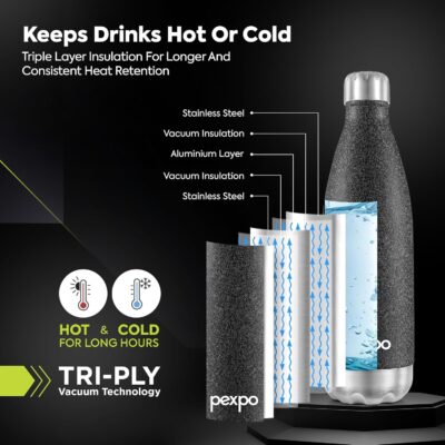 PEXPO Electro Hot & Cold ISI Certified Flask | Stainless Steel Water Bottle - 750ml Black | 2 Years Warranty | Office Bottle | Workout | Travelling | Home | Adults & Kids