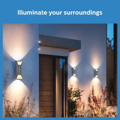 Philips Lucent outdoor wall light features a vertical design that adds a contemporary look to exterior spaces.